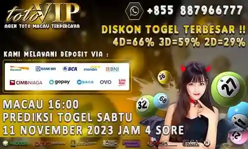 | Macau 4D Sabtu ⇒ 11 November 2023 ⇒ Jam 16:00 WIB |